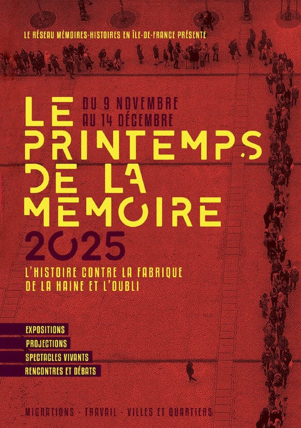 A l’initiative du Réseau Mémoires-Histoires en Ile-de-France, nous avons le plaisir de vous inviter et de vous adresser ci-joint le programme (ainsi que le visuel affiche) de notre prochaine biennale Le Printemps de la mémoire 2025